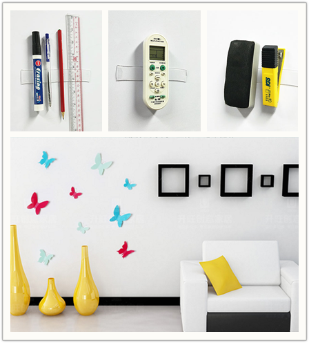 PU材質的無痕雙面膠:可水洗,長期不留膠痕,重復使用,水洗不減粘力,環(huán)??沙隹?,價格貴。